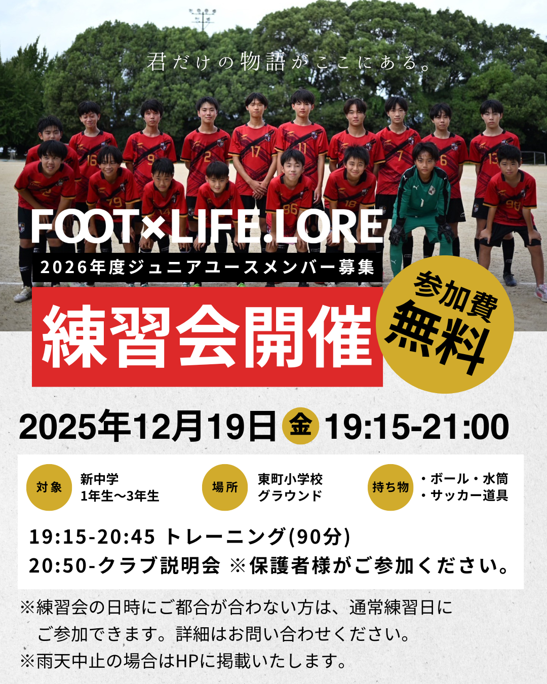 【日程】2025年12月19日(金)会場東町小学校グラウンド時間19:15~21:00※駐車場は校舎裏をご利用ください。【対象】新中学1年生~3年生(現在小学6年生~中学2年生)【…